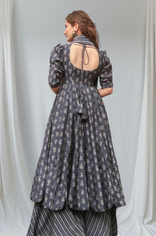 Mohar Ajrakh Print Prestitched Saree with Blouse
