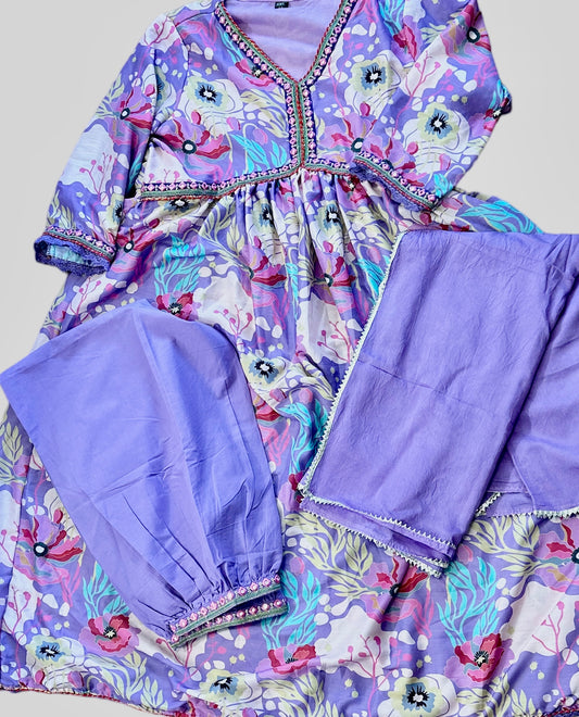 Alia cut with Plain Lavender Dupatta and Afghani PantsRegular price $38.00 USDRegular priceUnit price per$60.00 USDSale price $38.00 USDSale