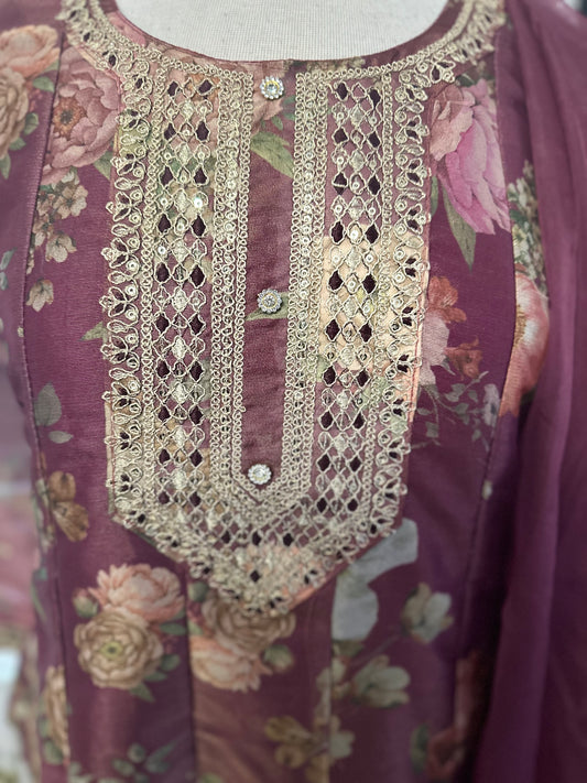 Ebony Chanderi Gown and Dupatta - 2pc Set