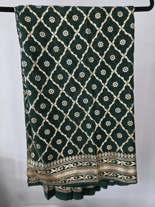 Phulari Ajrakh Print Prestitched Saree with Blouse