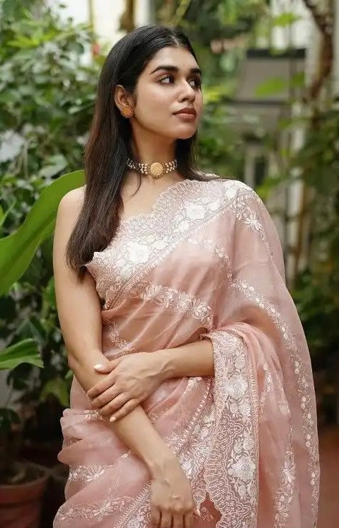 Sold outPre-stitched Dola Silk Saree - Mauve