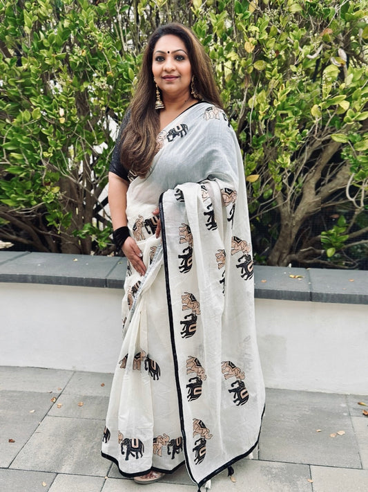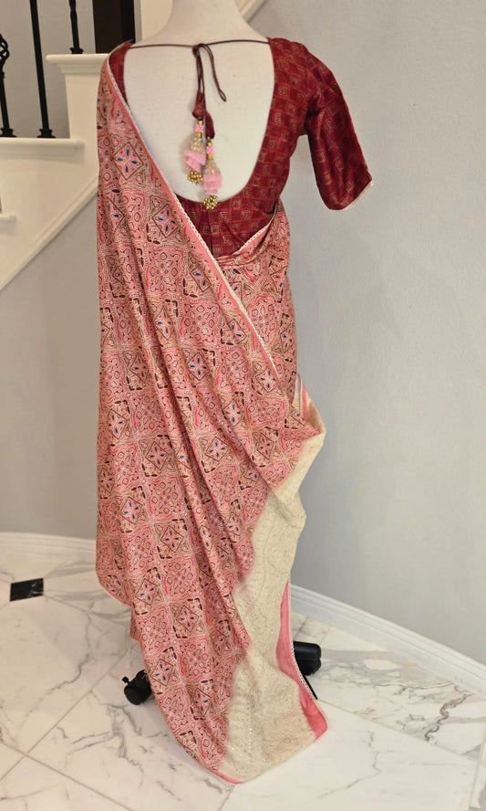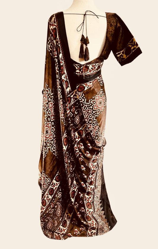 Mohar Ajrakh Print Prestitched Saree with Blouse