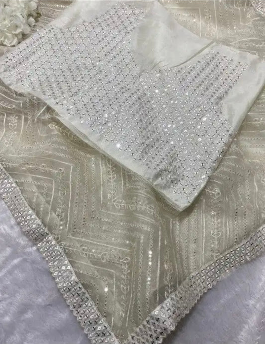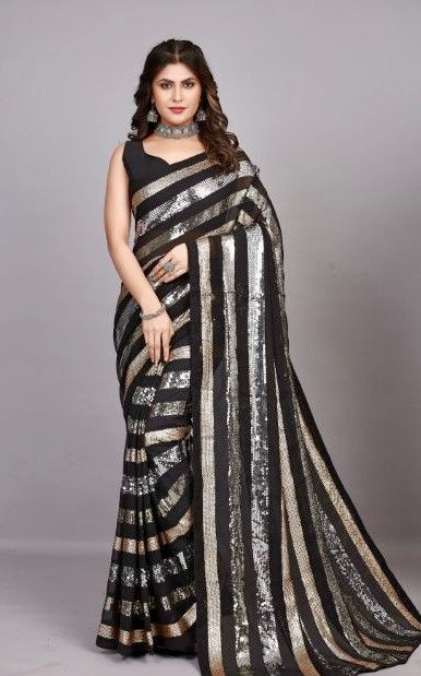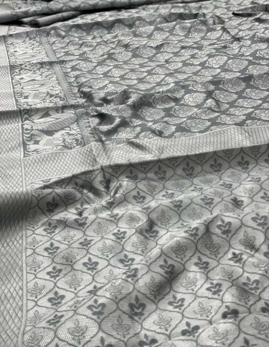 Pre-stitched Soft Lichi Silk Saree - Gray