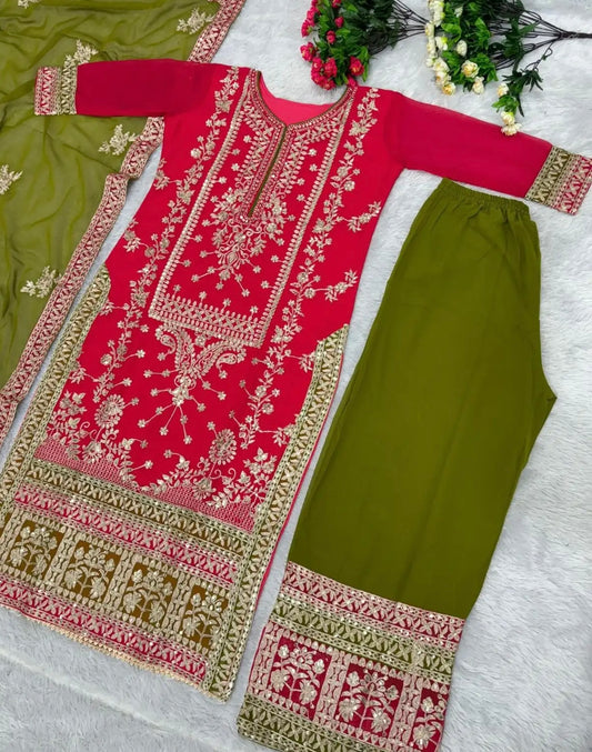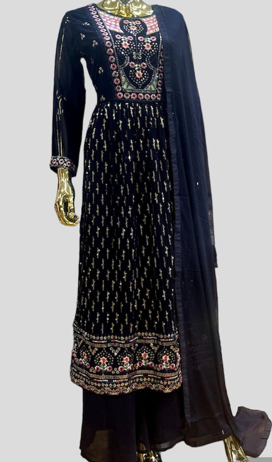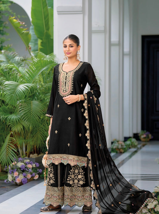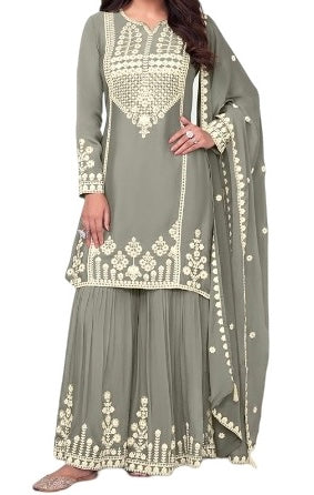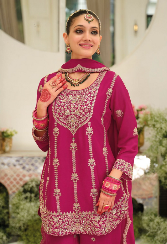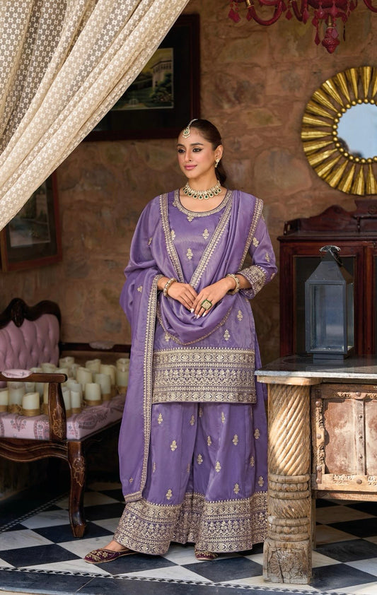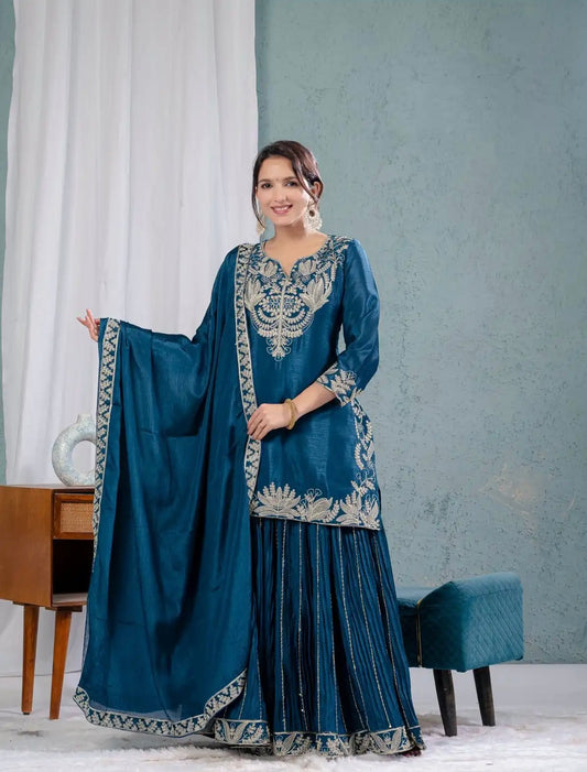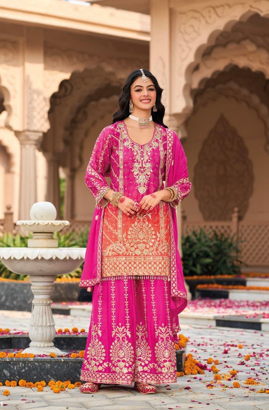 Chinon Sharara With White Heavy Embroidery and Bead Work