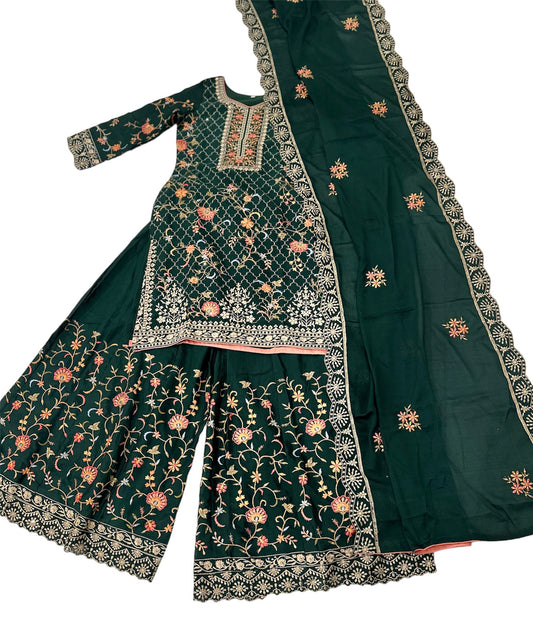 Heavy Embroidered Chinon Palazzo Suit - 3piece